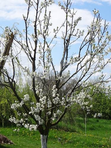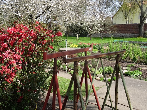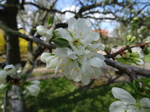 Im Garten blühen jetzt die Kirschen, die Renekloden, die Nancy-Mirabelle und die Birnen. Zwetschgen sind noch nicht so weit. Aprikosen und Pfirsiche sind durch. Schauen wir mal, ob was dran kommt. Was ich gesehen habe ist, dass unser neuer Aprikosenbaum angesetzt hat. Da bin ich aber mal gespannt. Bienen waren heute reichlich in den Bäumen, obwohl es doch recht kühl war und es auch Nachts kühl werden soll. Ist eben immer ein Risiko. Manche Jahre gibts dann Tonnen, wenn es zur Blüte gut und manche Jahre auch mal gar nichts, wenn es blöd läuft (Spätfröste, Starkregen). Beim Gemüse sitzelt das Gesäte schon ein bisschen. Was genial ist: die Blüten des Wildkohls. Die sind echt super. Ansonsten gibt es auch Löwenzahn und Schafgarbe.