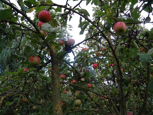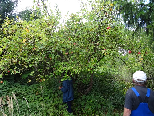 3. Es gab doch einiges zu ernten. Wie man aber sieht, müssten die Bäume mal verschnitten werden. Äpfel sind eben Kulturfrüchte und brauchen auch entsprechende Pflege, sonst altern sie zu schnell. Hier mal einige Bäume, die wir gefunden haben: