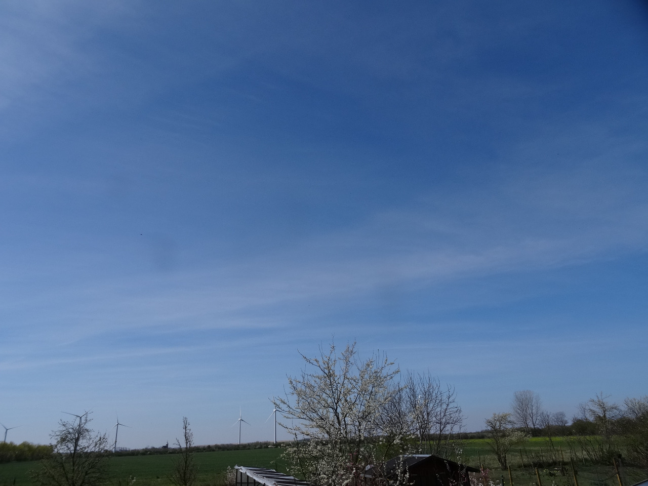 18.04.2022 13:46Mal davon abgesehen, dass ich nur eine griffige Überschrift gesucht habe, ist mir aufgefallen, dass man die Himmel nun wieder, Corona ist ja nun vorbei, über alle Maßen zuschmiert. Also massiv künstliche Wolken erzeugt.