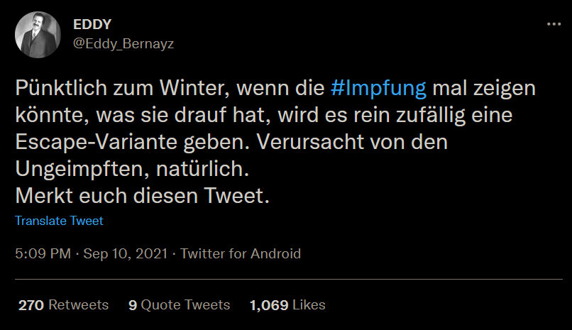 Derzeit "Pandemie der Ungeimpften". Diese Phrase wird immer wieder verwendet. Und das eben in allen Sprachen.