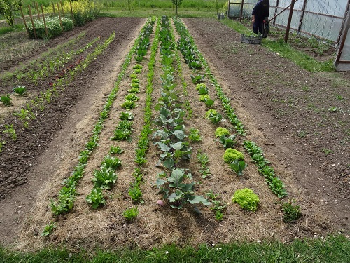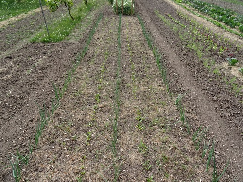 Mischbeet mit Mairübchen, Salate, Spinat, Kohlsorten. Bis der Kohl groß ist, ist der Rest gegessen. Man sieht aber auch, wie trocken es ist ist.