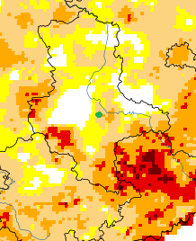 Der grüne Punkt zeigt an, wo wir hier wohnen. Man sieht, dass es da etwas weiter westlich ein Gebiet gibt, dass hervorragend mit Wasser versorgt wird. Und genau diese Veränderung konnten wir seit 2016 beobachten!