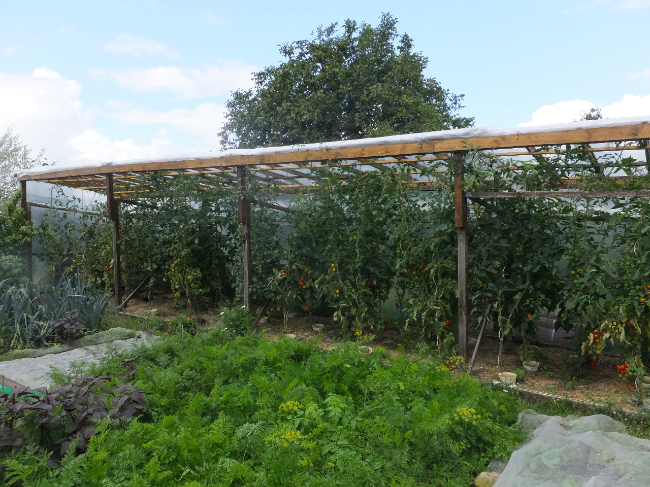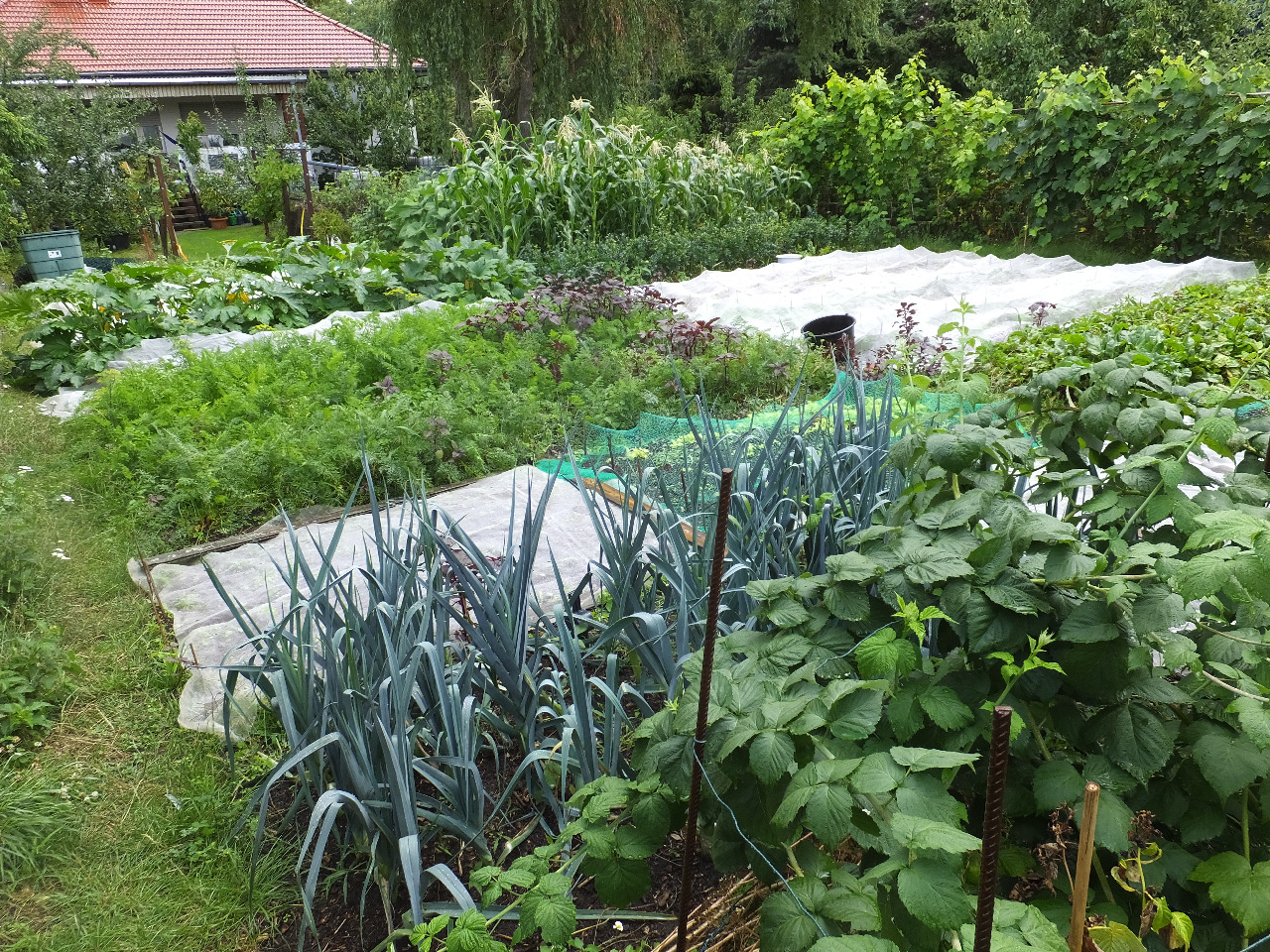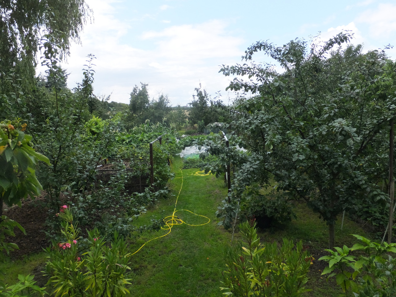 Was man auch überschätzt, ist die Arbeit, die es braucht. Ich bin da nie mehr als eine, zwei Stunden beschäftigt. Inklusive Gießen. Außer, ich bereite mal Beete vor und bepflanze die dann, aber alles in allem hält es sich doch sehr in Grenzen, was man da an Zeit benötigt. Im Frühjahr, ja, da muss man Zeit investieren, aber jetzt ist es Erhalt und Pflege. Gießen, mal Unkraut zupfen, mal Rasen mähen, mal Äste abstützen, mal Beete vorbereiten und neu bepflanzen / ansäen, mal den Hühnerstall ausflammen, mal Tomaten ausgeizen / anbinden ... ansonsten ernten und futtern.