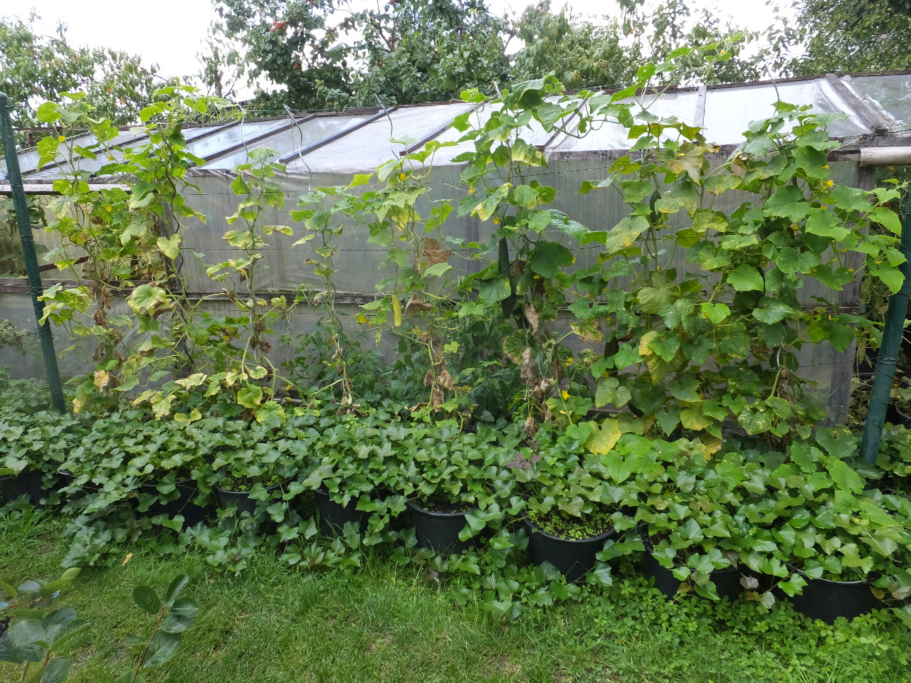 Ich neige ja dazu, immer alles zu bepflanzen und so haben wir Gurken im Gewächshaus, aber auch draussen. Ertrag mehr als wir essen können.