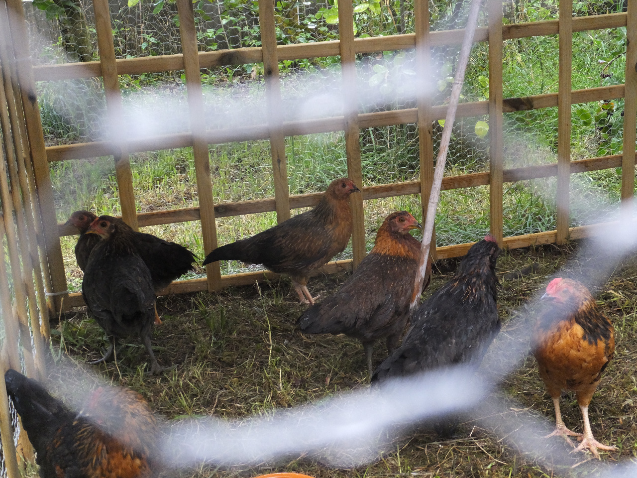 Der Hühnernachwuchs. Boah, gestern war kurz vor neun ein riesiges Trara im Hühnerauslauf. Ich hatte gerade Sport gemacht und nur kurz geschaut, was da los war. Anscheinend haben sie sich über ihre Plätze gestritten im Stall. Dachte ich jedenfalls.. aber so heftig heute? Dann fehlte aber ein Huhn kurze Zeit später. Nachts beim Ausflammen des Stalls (gegen Milben) habe ich sie gefunden. Lag irgendwo. Vom Kopf bis zum Rücken alles abgefressen. Ein Marder. Jetzt sind wir alamiert und müssen den Stall eher zumachen. Bisher hatten wir mit Mardern keinerlei Probleme, aber gestern wars soweit.