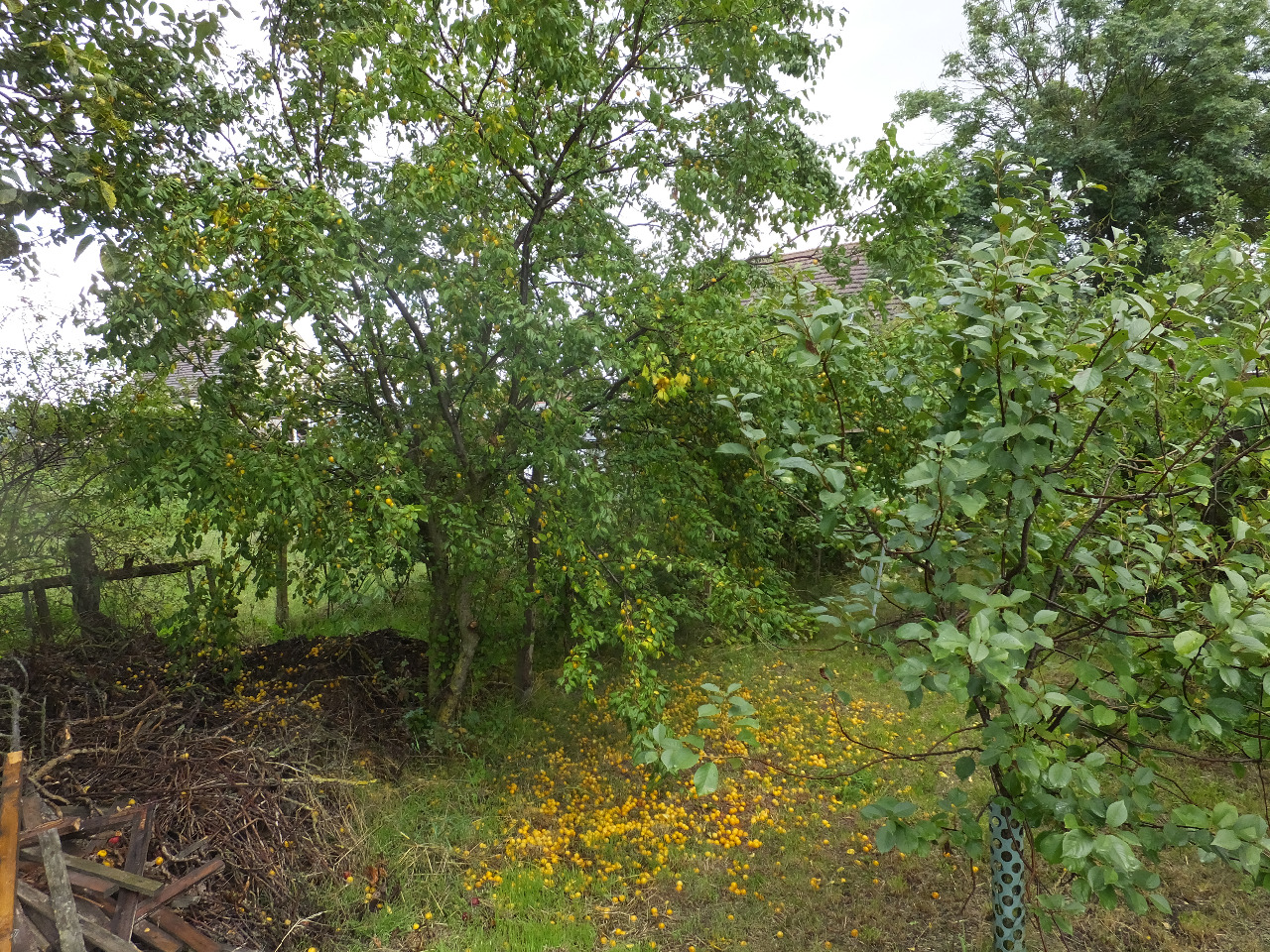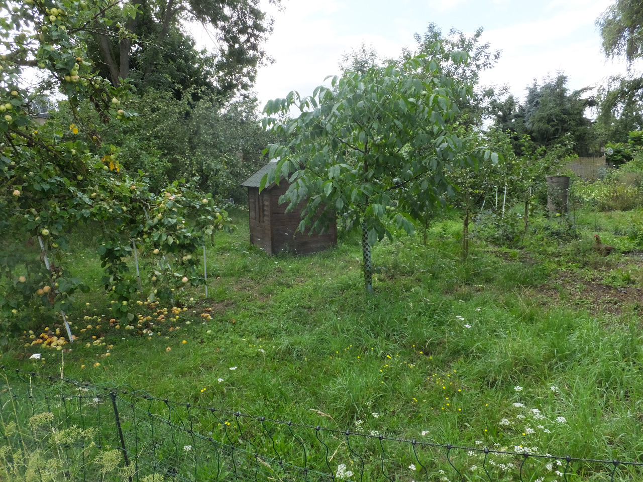 Der Hühnerauslauf. Das war auch mal Garten. Oder ist es noch. Ich hab das Stück im Frühjahr sogar umgebraben und vorbereitet, wollte Mais anbauen für die Hühner, dann aber gemerkt, dass es doch etwas zu viel wird.. die Hühner haben es schön frei gehalten und nehmen dort ihre Staubbäder.