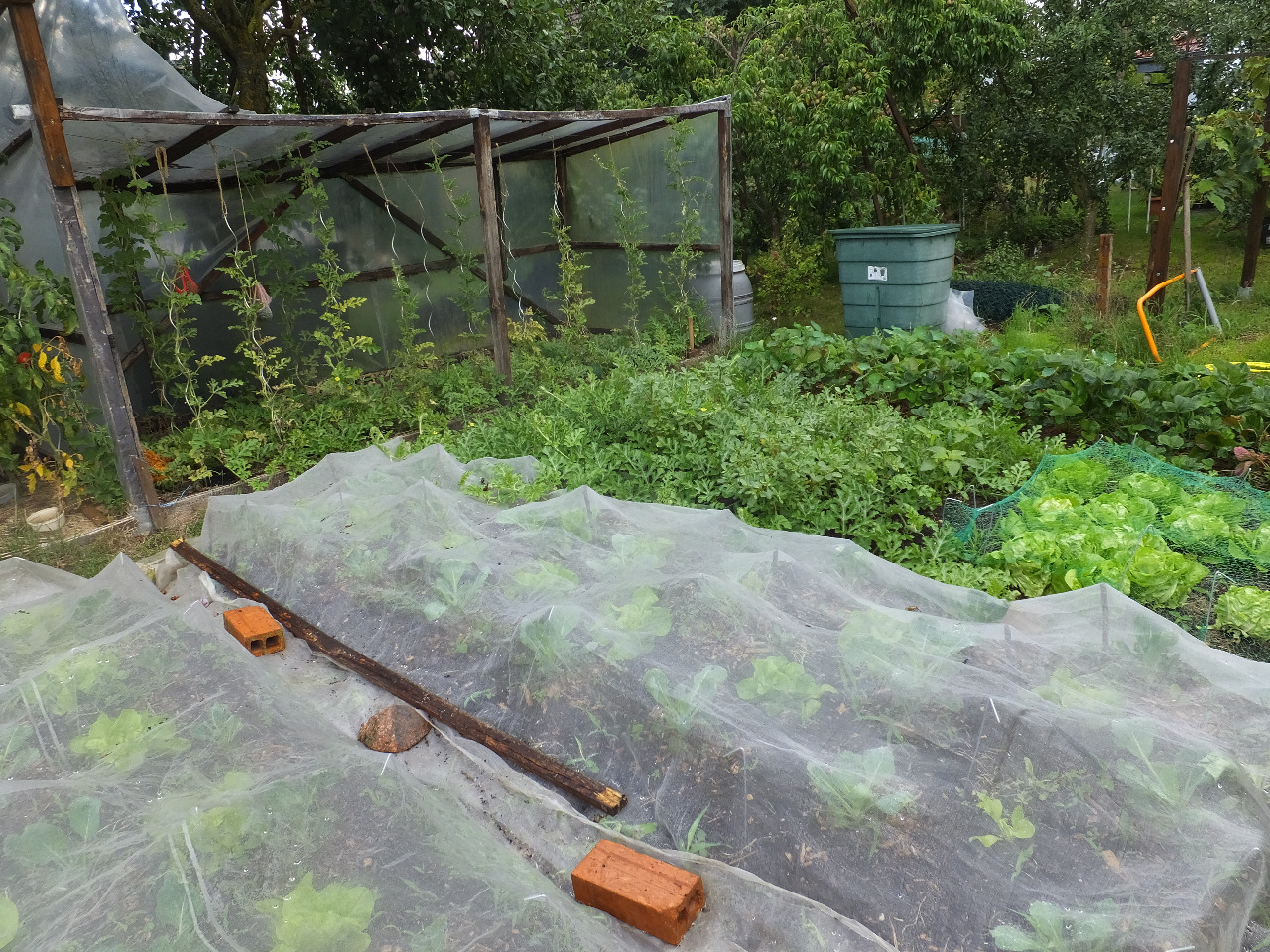 Alles, was Kreuzblüter heißt, kommt unter diese Netze, sonst ist der Erdfloh dran. Wobei es jetzt geht. Es ist nicht mehr so heiß und trocken. Sondern ein ganz gewöhnlicher, normaler deutscher Sommer. Aber ich will da nichts riskieren...