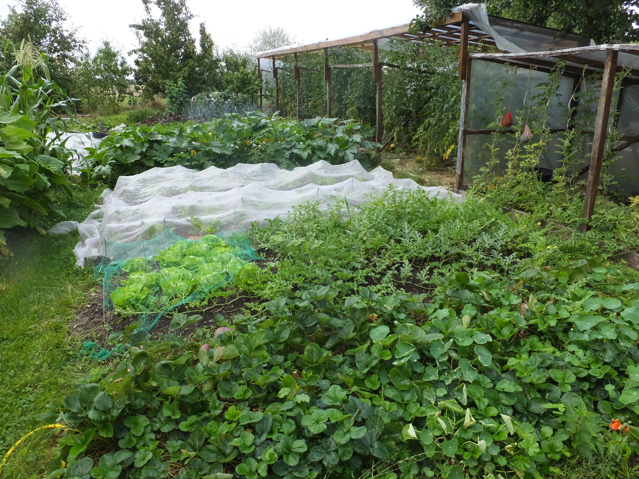 Na ja, also, die Fläche, die man hat, ist ja egal.. Man muss aus dem was machen, was man hat. Manche haben nur einen winzigen Garten, andere haben 5 Hektar vom Opa geerbt. Andere haben so ein Stück wie wir hier. Und man kann auch überall wieder anfangen. Vieles geht so schnell. Tomaten, Himbeeren, Gurken, das kann man schon im ersten Jahr ernten. Das dauert alles gar nicht so lange... Man muss nur etwas pflegerisch hintersein.