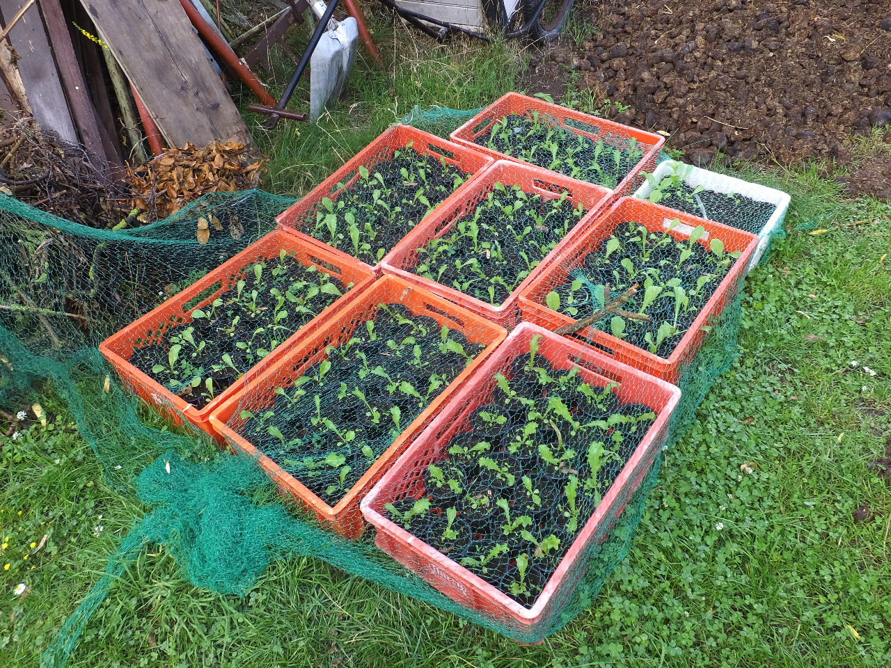 Die Herbstsachen sind auch schon erledigt (Blumenkohl, Weiß- und Rosenkohl), Zwiebeln sind raus, jetzt kommen noch Spielereien wie Mairübchen, Rucola, Asia- und Wintersalate, aber erst, wenn das Gewächshaus leer ist.