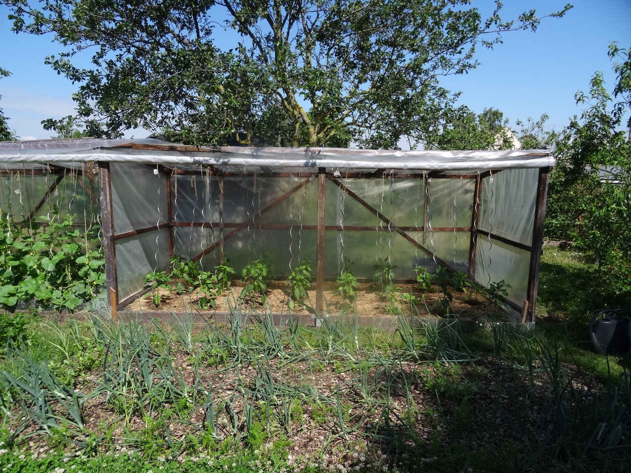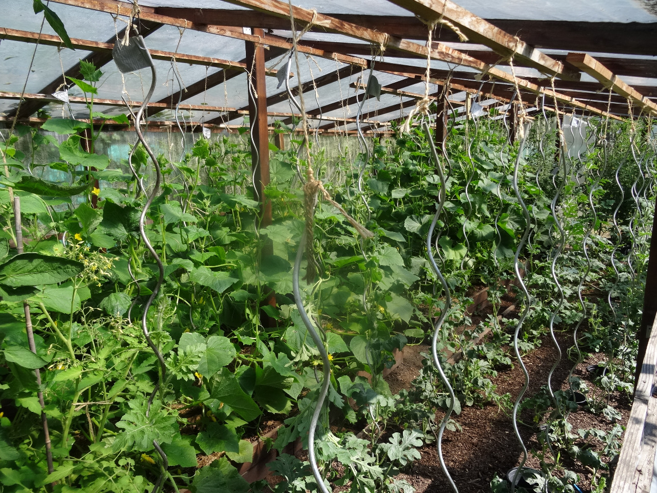 9. Blick ins Gewächshaus. Heuer etwas geordeneter, nachdem es mir 2022 einfach zu wild durcheinander war. Gurken, Tomaten, Melonen. Einige Melonen wachsen schlecht, da heuer viele Blattläuse zu finden sind. Na schauen wir mal...