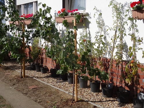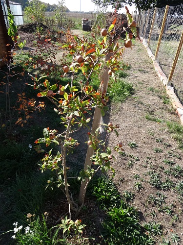 16. Ein ewiger Kreislauf. Alte Bäume sterben ab, junge werden nachgepflanzt und nehmen ihren Platz ein. Hier Aprikosen. Haben heuer auch schon gut getragen. Der Platz ist auch günstig an der Südseite des Hauses. Solange die Bäume klein sind, haben wir auch noch Tomaten dort stehen. Ist ja ein warmer und geschützter Platz.
