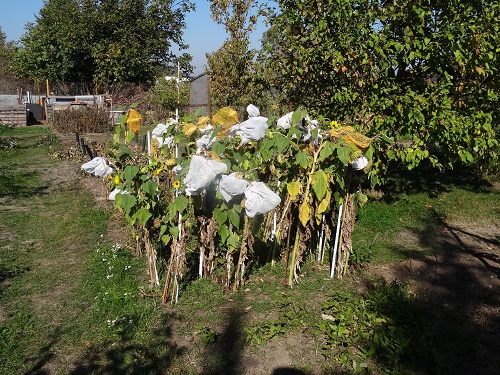 8. Meine Riesensonnenblumen. Sollten eigentlich zwei bis zweieinhalb Meter hoch sein. Na ja, trotz Bewässerung haben sie nur knapp die Hälfte geschafft. Die Samen muss man dann vor Vogelfraß entsprechend schützen.