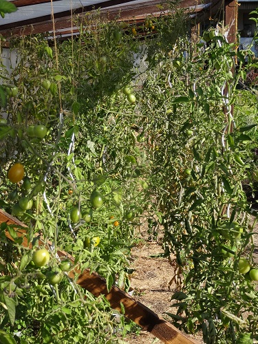 3. Im Gewächshaus wächst und gedeiht es auch noch ordentlich. Bin mal gespannt, ob die Tomaten noch ausreifen. Ich habe immer noch Lust drauf. Und die Pflanzen hängen auch noch voll!! Kann aber sein, dass viele am Ende dann nicht mehr rot werden. Schauen wir mal.