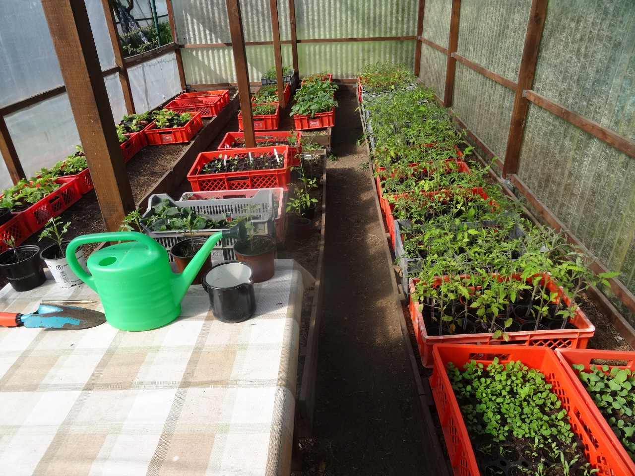 Danach haben wir die Tomaten ins Tomatenzelt gepflanzt. Mal sehen, wieviele Sorten es am Ende werden. Ansonsten haben wir noch Gurken, Melonen, Honigmelonen, Yacon, einige Kreuzblütler wie Mairübchen und Salate vorgezogen.