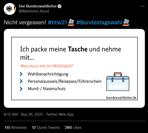 Bevor ich rüber, das Wahllokal ist gleich nebenan, gegangen bin, hatte ich noch kurz auf Twitter geschaut, was es denn so Neues gibt. Und da fiel mir das auf: