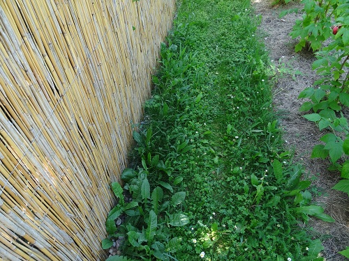Dieses Himbeerzeile haben wir im letzten Frühjahr gepflanzt, im zweiten Jahr trägt sie nun recht reichlich. Zum Hochbinden haben wir ein paar Stakete gebaut, so dass die nicht im Dreck liegen.