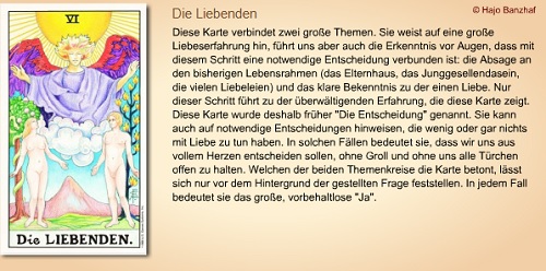 Die Liebenden, in dieser Karte positiv dargestellt, mit direkter Verbindung zum Göttlichen, zum Licht,