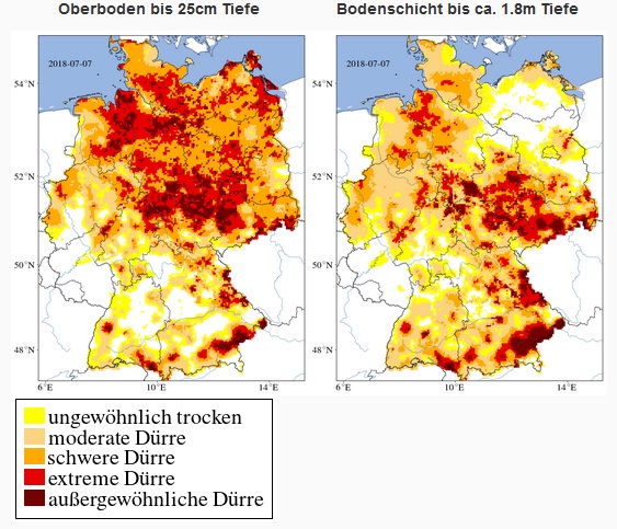 Und ich habe gerade mal im Archiv hier gekramt und gesehen, dass die Dürre im September 2016 relativ eng begrenzt in Sachsen-Anhalt und dann auch nur hier bei uns im Mitteldeutschen Trockengebiet aufgetreten ist. Das aber, das ist heftig! Der ganze Norden und Osten wird zunehmend wieder zur Steppe.
