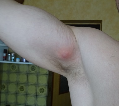Ich weiß jetzt nicht, ob das nun noch Nachwirkungen von Spanien sind, oder direkt auf den Genuss von unguten Produkten zurückzuführen ist. Vielleicht beides zusammen. Hannsche hat mir mitgeteilt, dass seine Beule am Bein folgenlos abgeheilt ist. Als ich bin auch mal gespannt, ob nach der Abheilung der Knubbel unter der Haut noch da ist, oder ob er seine Größe verändert hat. Den Knubbel sieht man mal hier: