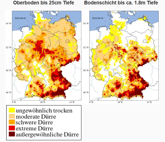 Bei uns ist es schon wieder extrem, aber man sieht auch, dass es weite Teile Deutschlands mittlerweile betrifft, wo eine schwere bis aussergewöhnliche Dürre herrscht.