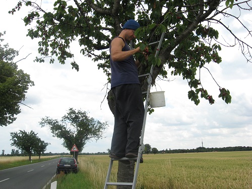 Und so hab ich mich die letzten Tage aus Feldern und Gärten Mitteldeutschlands ernährt und war heute Kirschen pflücken. Keine Stunde Arbeit hat 7kg Kirschen gebracht. Eigentlich acht, denn ich hab mindestens ein Kilo schon auf dem Baum gegessen. :-) Und siehe da, ich fühle mich damit nicht schlechter als mit den Früchten in Costa Rica.