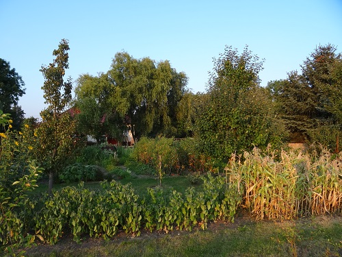 Diese Kombination aus Obstbäumen, Nutzflächen, Sträuchern und essbaren Hecken ist auch für meinen Garten das Vorbild.