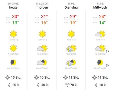Ob wir Dienstag etwas abbekommen ist bei Gewittern auch nicht sicher. Mann, so ein schöner Landregen wäre mal gut, mal drei, vier Tage schöner Regen, damit das Wasser auch mal tiefer in die Erde sickert. Wir haben hier ja immernoch extreme Dürre im Boden.
