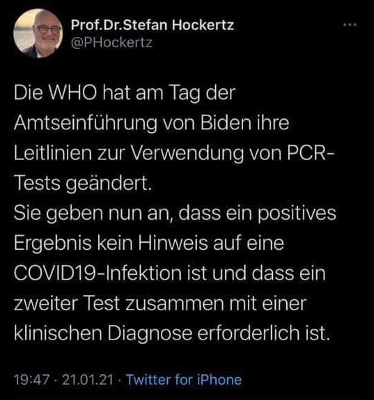 Corona ist vorbei! Die Globalisten haben die Macht in den USA übernommen und schon beendet man Corona! Nichts anderes bedeutet das. Wenn jetzt die Tests nicht mehr als Infektionsnachweis herangezogen werden sollen, ist Corona vorbei. Oder so gut wie. Die Zahlen würden sofort Richtung Null gehen.